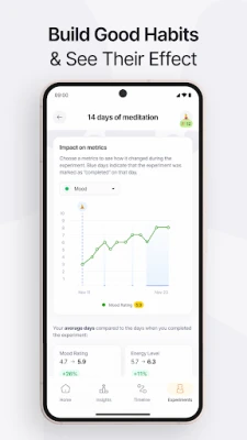 Effecto je vaš lični putokaz ka boljem razumevanju zdravlja i raspoloženja. Otkrijte kako vaše svakodnevne aktivnosti utiču na vaše opšte blagostanje, pretvarajući rutinske unose u duboke uvide. Aplikacija Effecto osmišljena je da vam pruži personalizovane analize koje jasno prikazuju vezu između vaših navika, simptoma i životnog stila. Na taj način, možete precizno identifikovati okidače, optimizovati svoje rutine i povratiti kontrolu nad svojim zdravljem. Bez obzira da li upravljate hroničnim stanjima, pratite mentalno zdravlje ili jednostavno želite da razumete faktore koji oblikuju vaše raspoloženje, Effecto se prilagođava vašim jedinstvenim potrebama uz brzo i jednostavno dnevno beleženje.