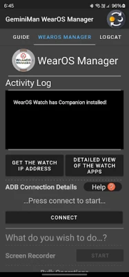 GeminiMan WearOS Manager je alat koji omogućava izvođenje raznih ADB komandi preko Wi-Fi veze direktno na vašem Wear OS satu. Efikasno upravljajte svojim pametnim satom bez potrebe za kablovima. Pojednostavite interakciju sa vašim Wear OS uređajem za optimalnu kontrolu.