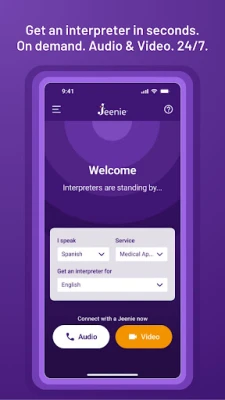 Jeenie pruža mobilno tumačenje uživo, rešavajući globalne komunikacione prepreke. Odmah vas povezuje sa stručnim tumačem putem videa ili zvuka, 24/7. Jeenie radi na vašem pametnom telefonu, prateći vas svuda.